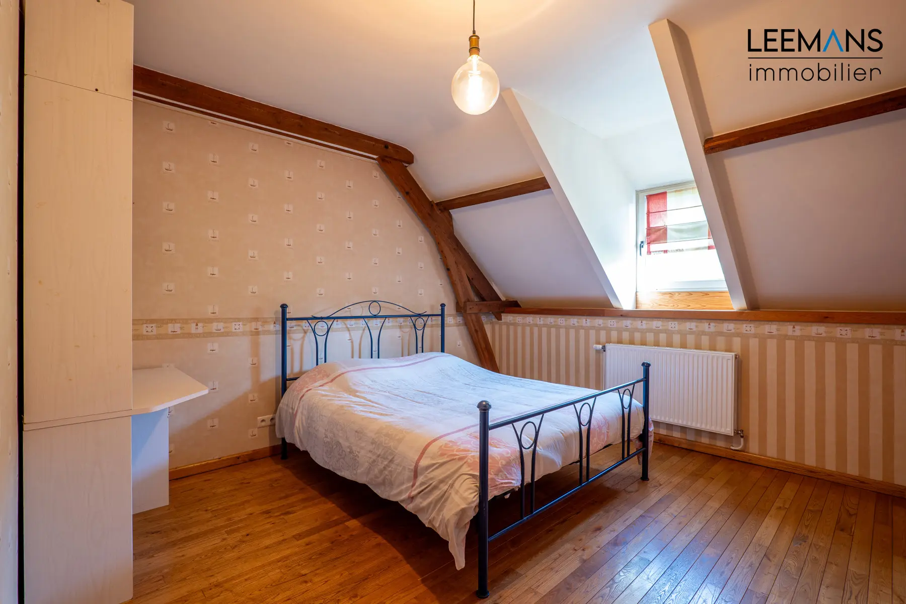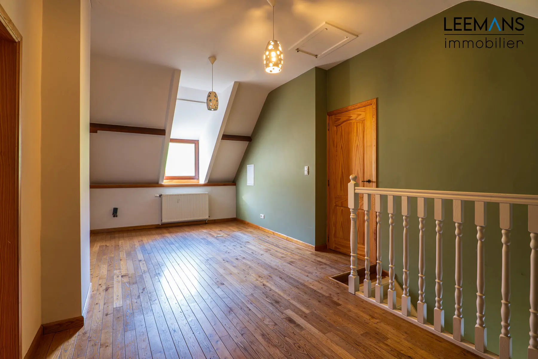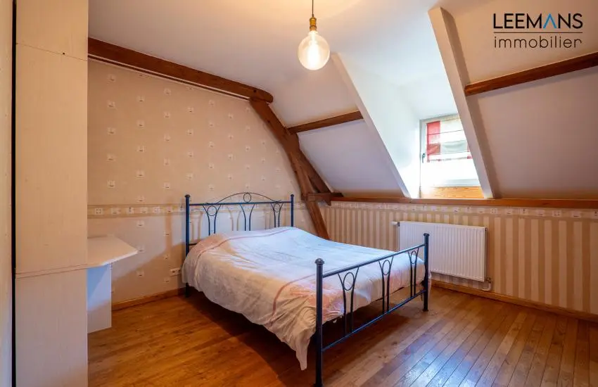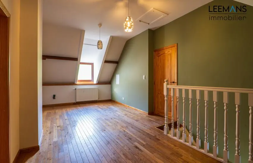 A l'étage, un hall de nuit dessert 3 belles chambres en parquet de 23, 17 et 14m², une salle de bain et une pièce polyvalente de 20m² environ. Des combles aménageables de 60 m² sont aussi présents.