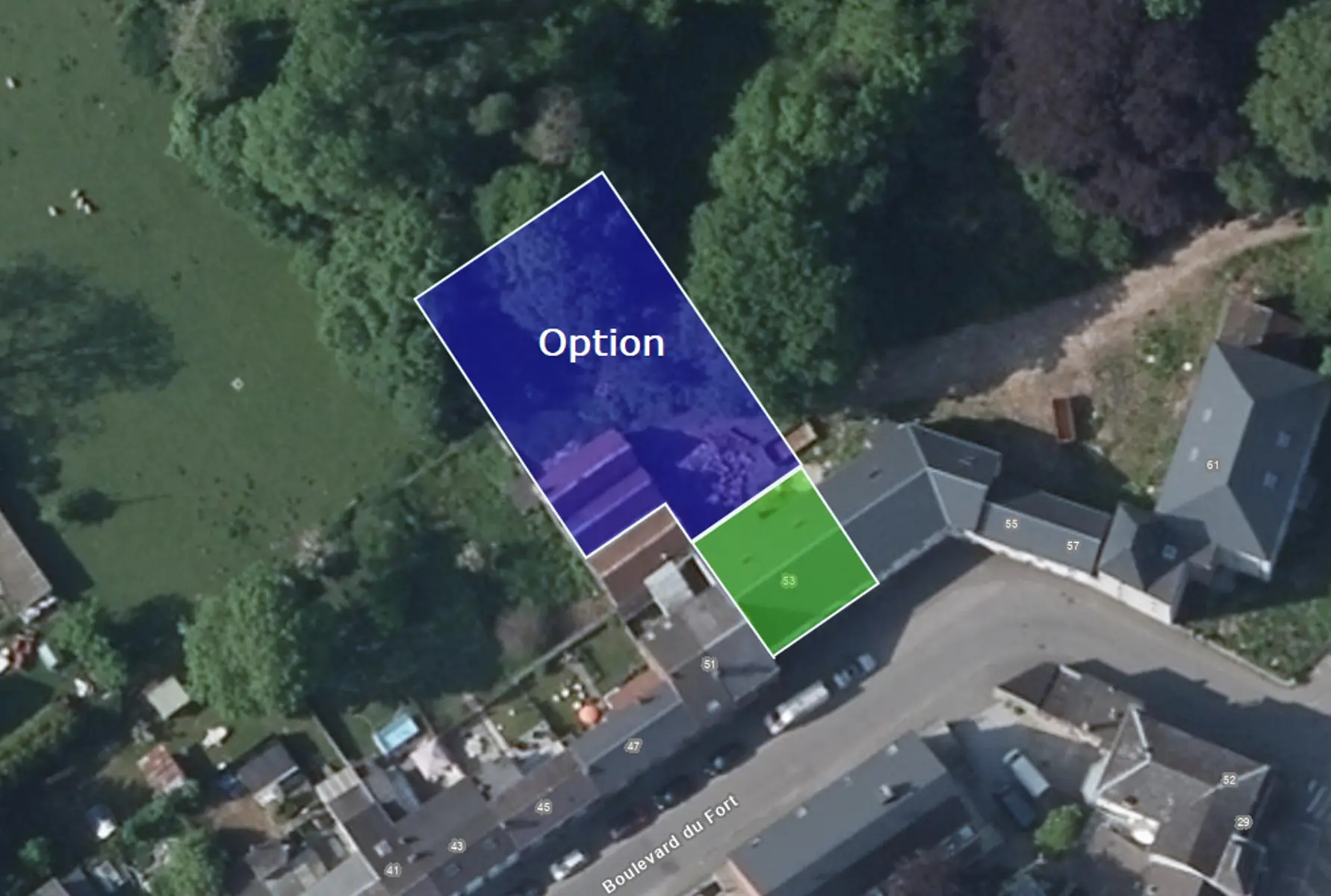 En option, possibilité d'acheter les deux garages et un espace de jardin supplémentaires d'environ 487 m2. Il est également possible d'acquérir une bande de 4m de large depuis la rue des jardins afin d'accéder aux garages avec un véhicule motorisé.