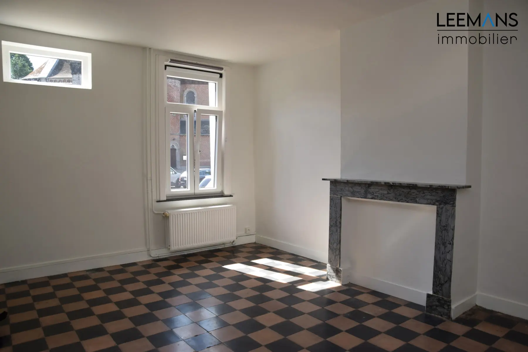 Châssis en pvc double vitrage, électricité conforme, PEB C, chaudière à mazout, compteurs individuels. Parking aisé car il y a un grand parking sur la Place.