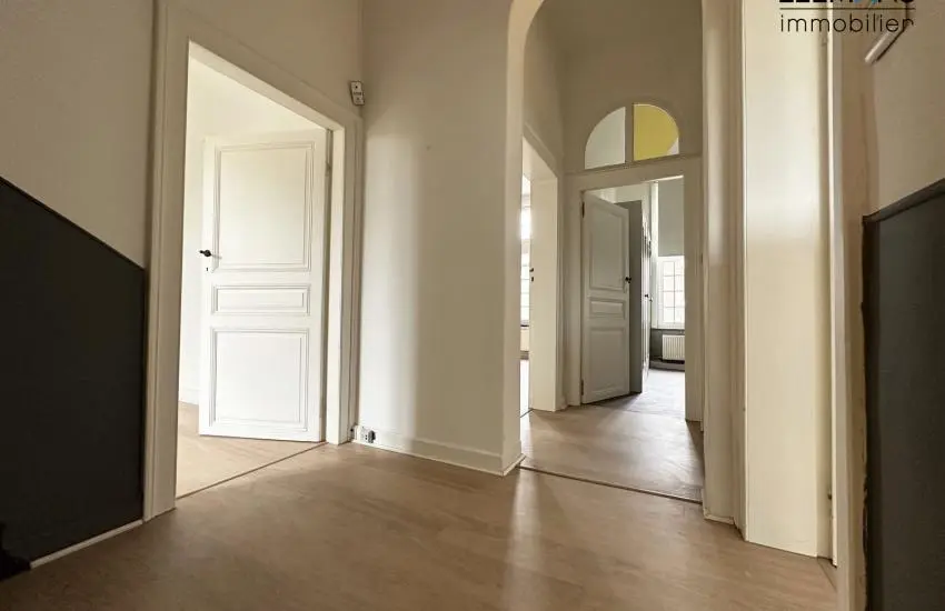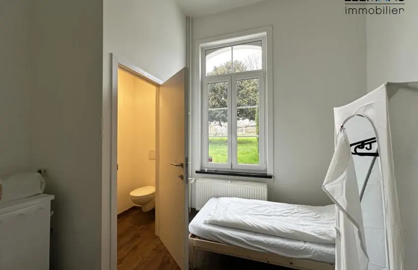 Châssis en pvc double vitrage, électricité conforme, PEB C, chaudière à mazout, compteurs individuels. Parking aisé car il y a un grand parking sur la Place.