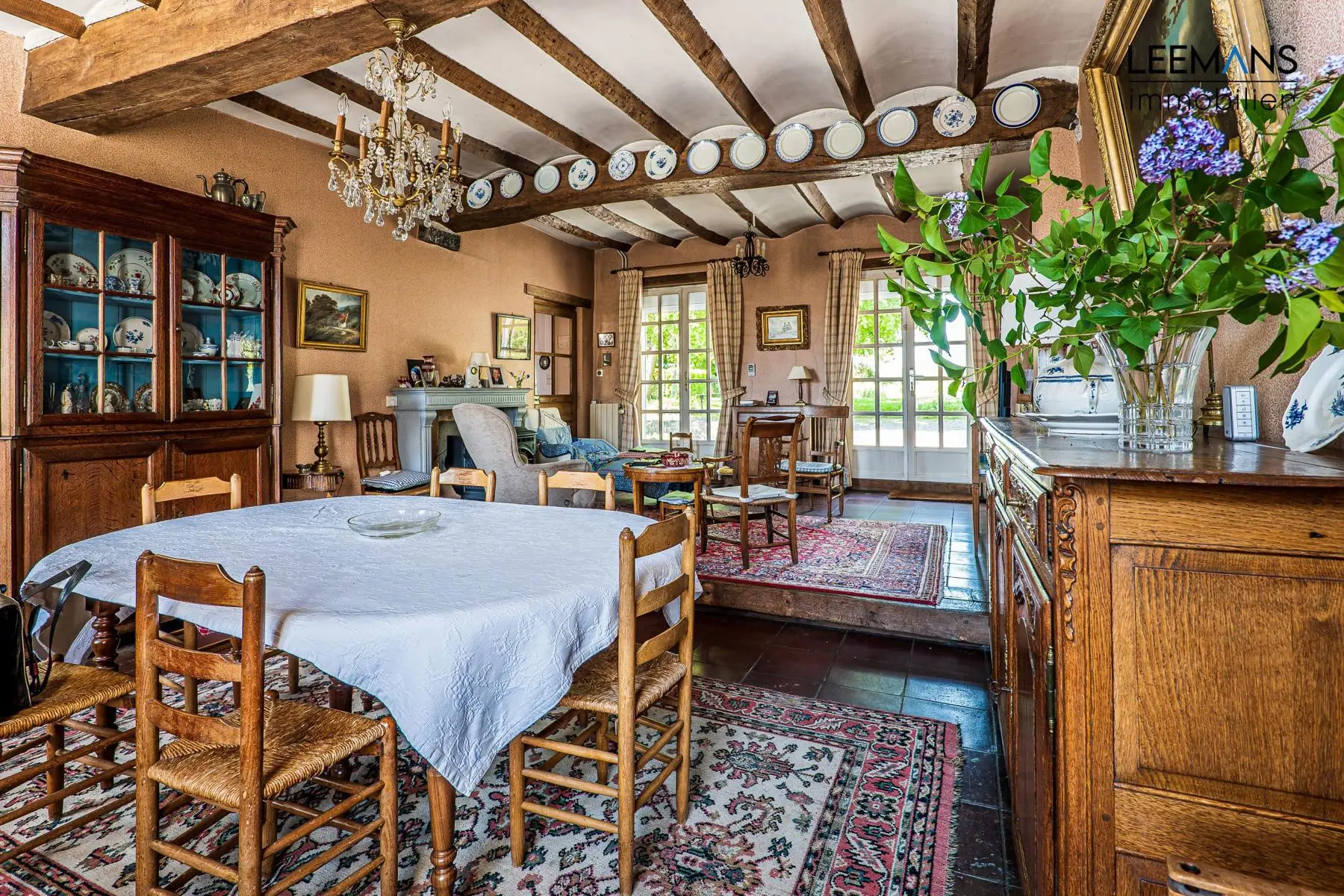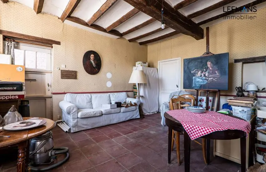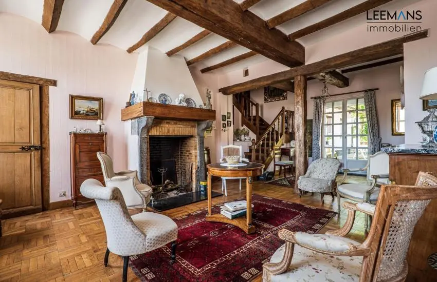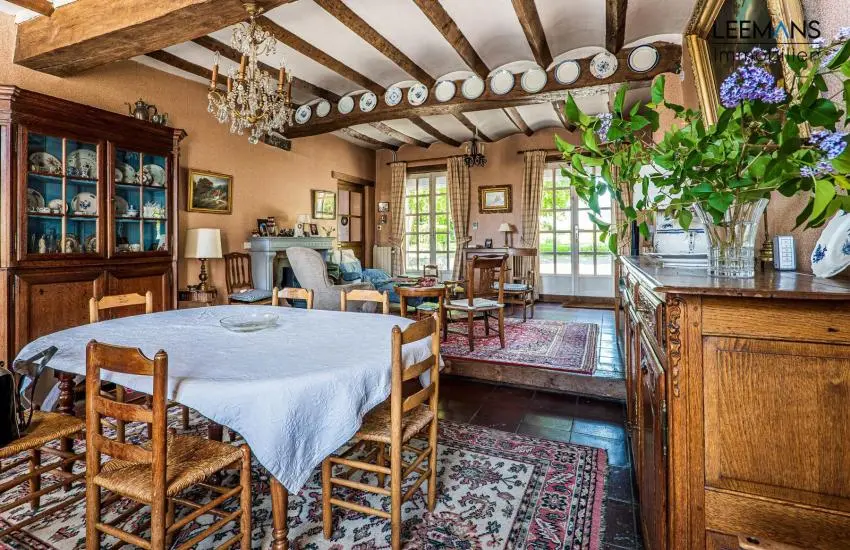 Au rez-de-chaussée, de belles grandes pièces sous voussettes. Une salle à manger de 35m² et un salon de 33 m² avec feu ouvert, donnant toutes les deux sur le superbe jardin. Attenant à la salle à manger, une cuisine et une buanderie. Retrouvez aussi un WC, ainsi qu'une pièce de 30m² et un atelier de 50 m². Ces deux dernières pièces formaient à l'époque un magasin d'antiquités, accessible indépendamment par la gauche de la maison.
