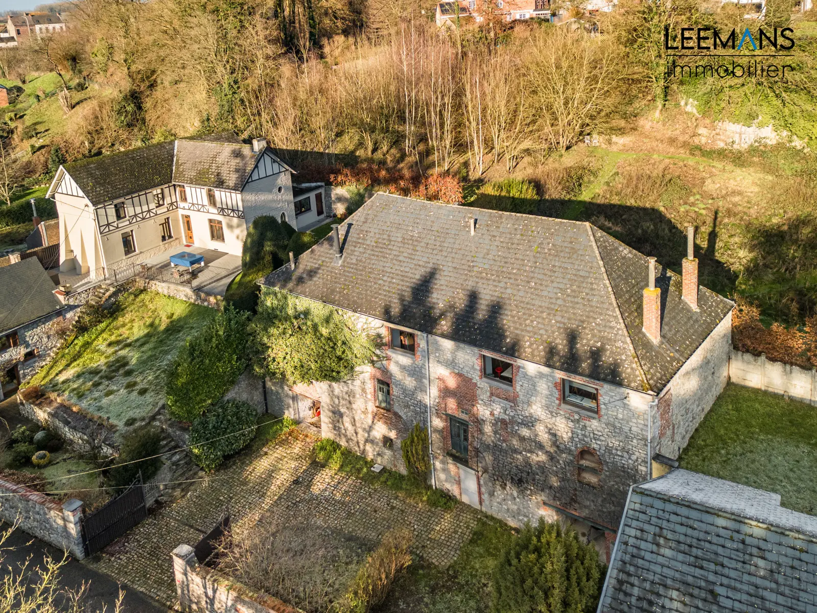 Espaces de stockage supplémentaires (+/-150 m²) et anciennes caves voûtées.