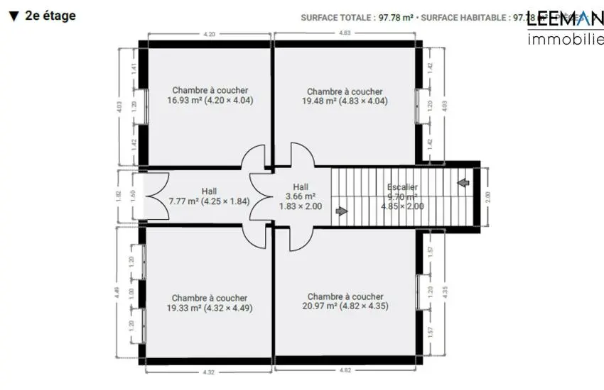 Le 2ᵉ étage vous réserve une véritable surprise : un grenier aménageable de ±100 m², très spacieux, offrant un énorme potentiel (chambres supplémentaires, salle de jeux/sport, suite parentale, bureau, etc.).