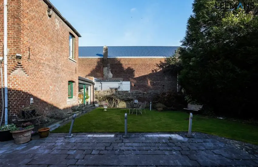 Sur la droite de la propriété, un terrain à bâtir peut également être acquis, au prix de 90.000 €. Ce terrain a deux accès, un sur la Chaussée de Mons et un à l'arrière sur la Rue Prévot, parfait pour y construire un garage/atelier en fond de propriété.