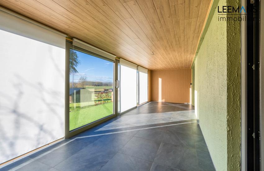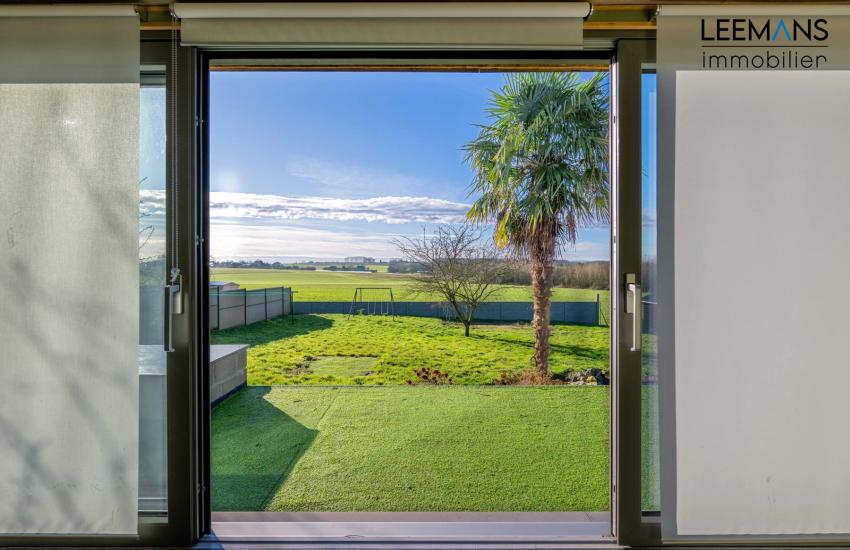 Dès l’entrée, vous serez séduit par un hall accueillant qui mène vers un vaste living baigné de lumière, offrant un espace de vie convivial parfait pour recevoir famille et amis. Celui-ci s’ouvre sur une véranda, véritable prolongement de la maison, idéale pour profiter de la vue sur le jardin en toute saison.