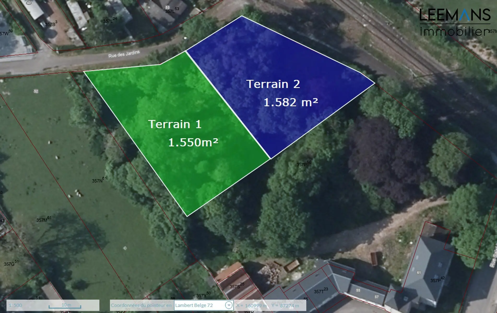 Venez découvrir ces deux magnifiques terrains à bâtir, sis rue des jardins, au bout d'une voie sans issue donnant sur la voie verte cyclo-piétonne.