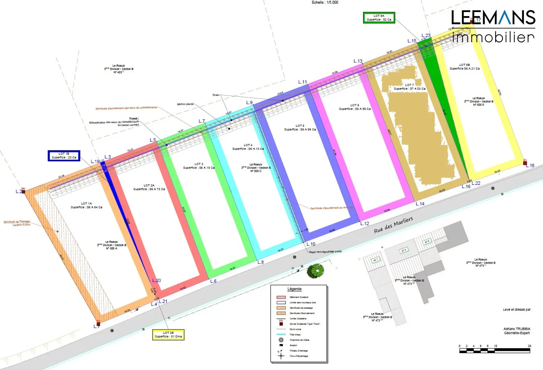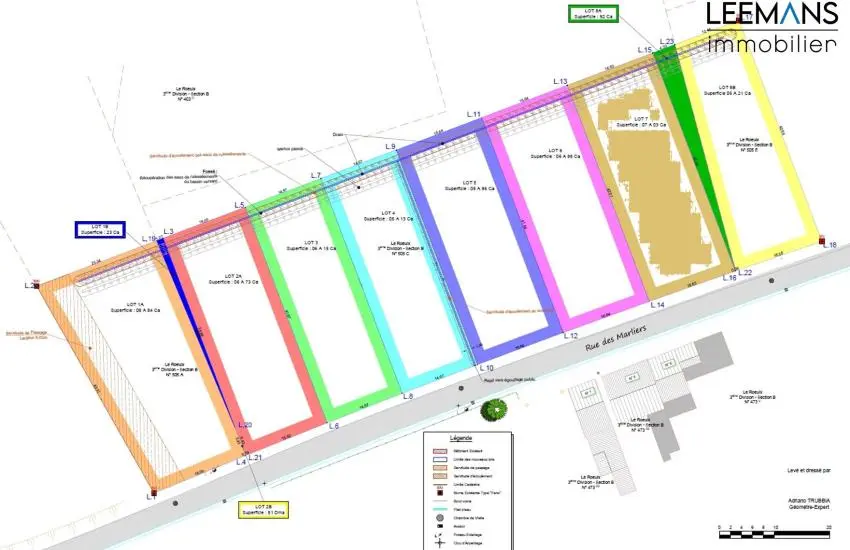 La contenance de ce terrain est de 7a 03ca, idéale pour la construction d'une belle maison 3-façades.