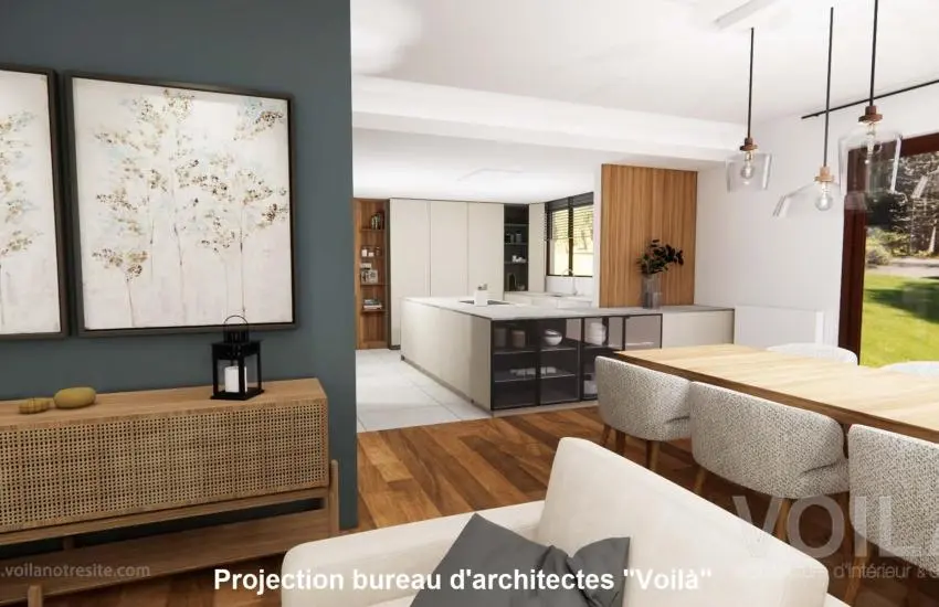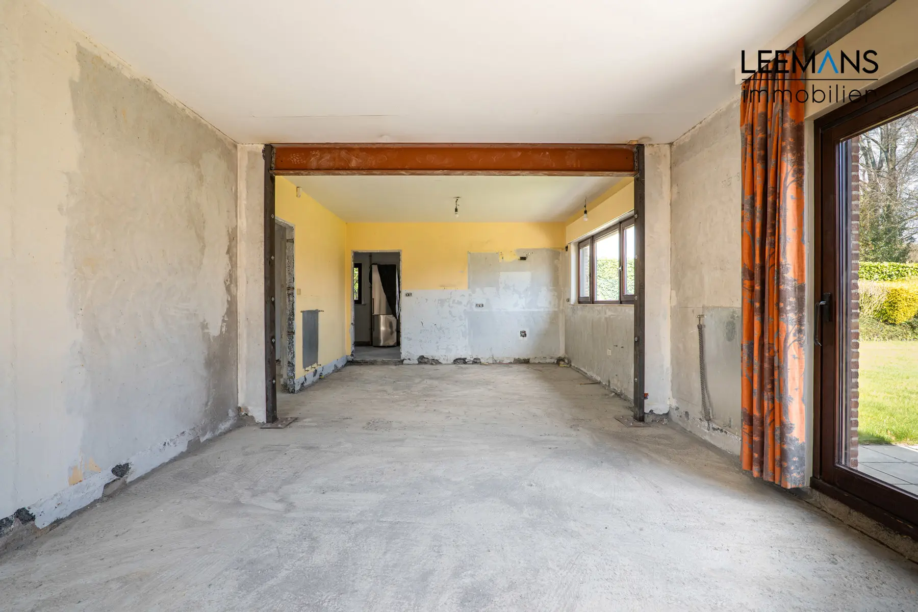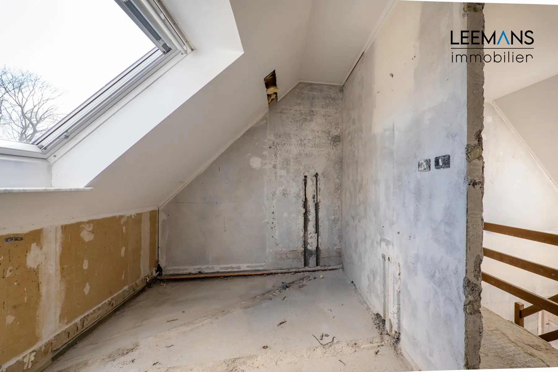 A l'intérieur, la maison a entièrement été mise à nu afin de moderniser les différentes pièces et d'améliorer la circulation. Cela permet de se rendre compte que la maison est très saine et offre aux futurs propriétaires l'avantage de pouvoir choisir leurs matériaux et leurs finitions.